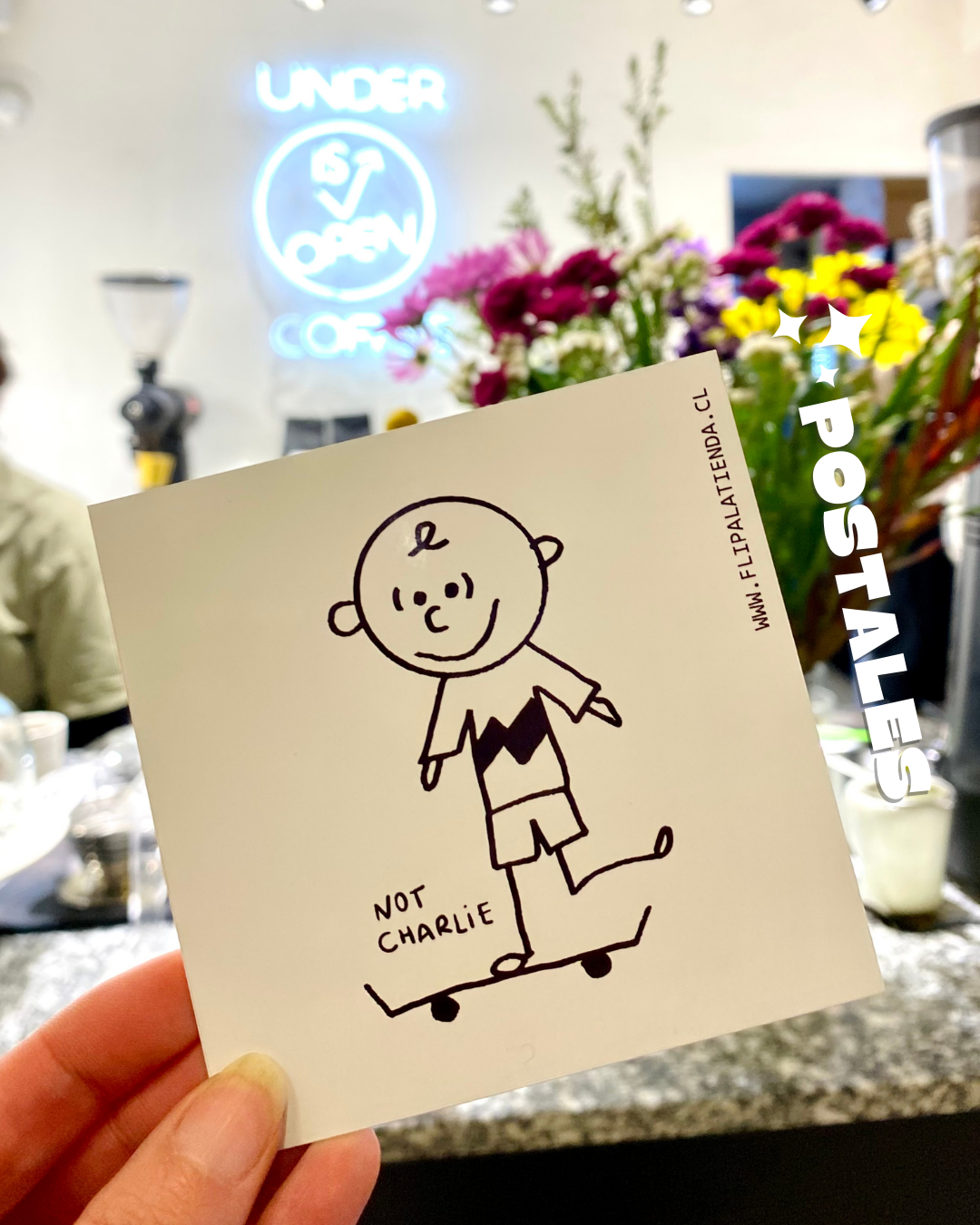 Una postal, pero no con cualquier postal ♡ llega a Flipa la nueva colaboración con @soyrats llamada NOT CHARLIE ~ para homenajear a nuestro dibujito animado favorito ♡